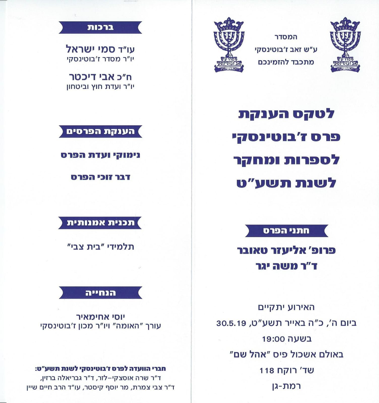 הזמנה לטקס הענקת פרס ז'בוטינסקי מאת einaraviv 13.5.2019 כללי 30 במאי ברמת גן. כל הפרטים בפנים מאת-ליכודניק
